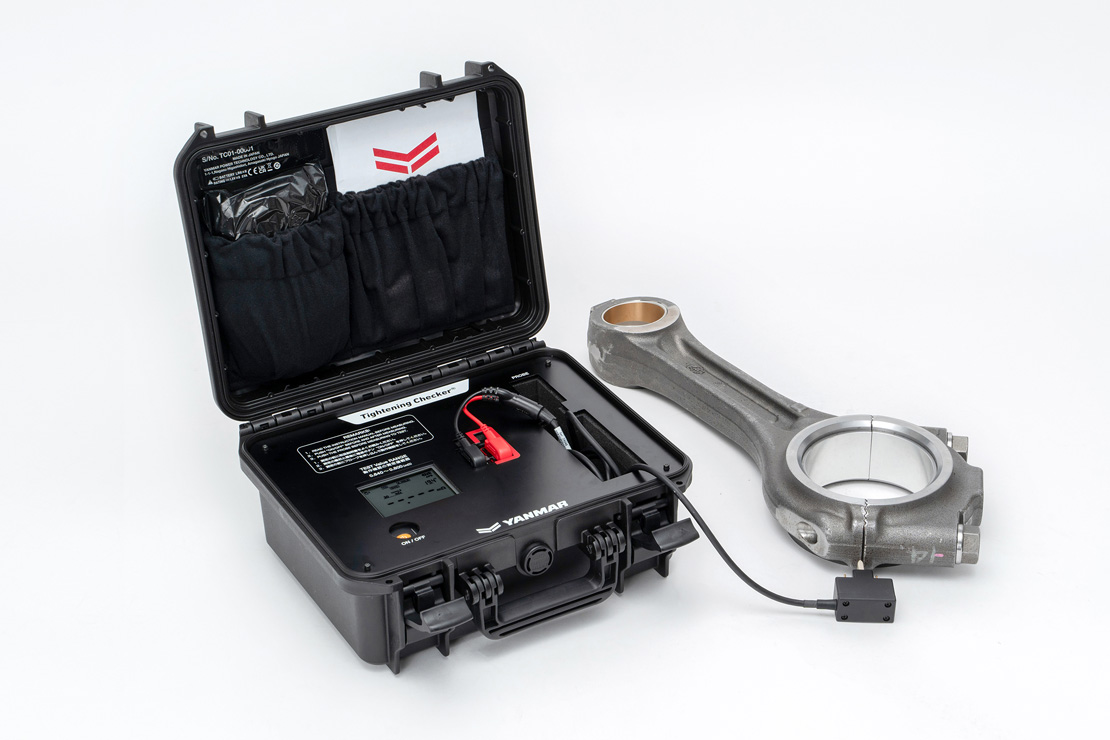 To solve this, Yanmar Power Technology developed a tightening checker capable of accurately assessing the tightening condition of connecting rod bolts, a critical component of marine engines through an investigation of its own engines. This device allows even less-experienced personnel to perform reliable maintenance checks, while also providing measurable data that can be recorded and managed.