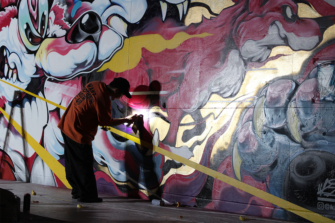 He specializes in fictional characters, and his weapons are his flashes of inspiration and sharp spray can control.