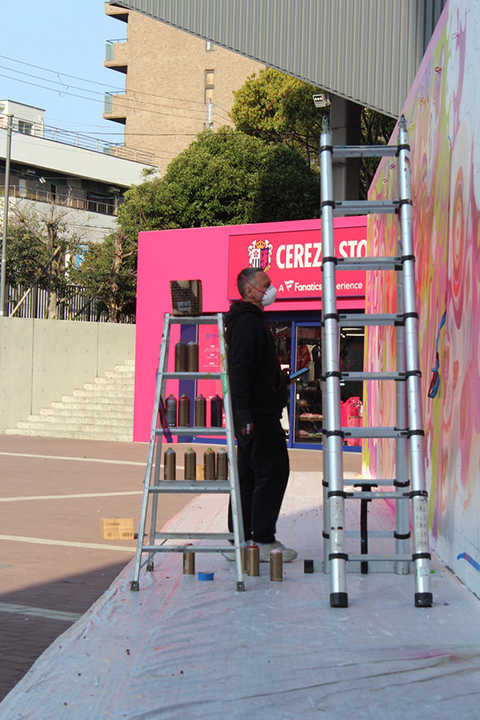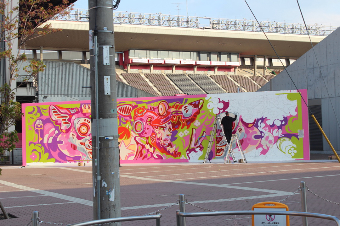 The seemingly intricately combined colors and patterns are each expressed with a delicate sense of color and can control, making it a work unique to HANASAKA MURAL, a canvas where region, culture, and sports intersect.