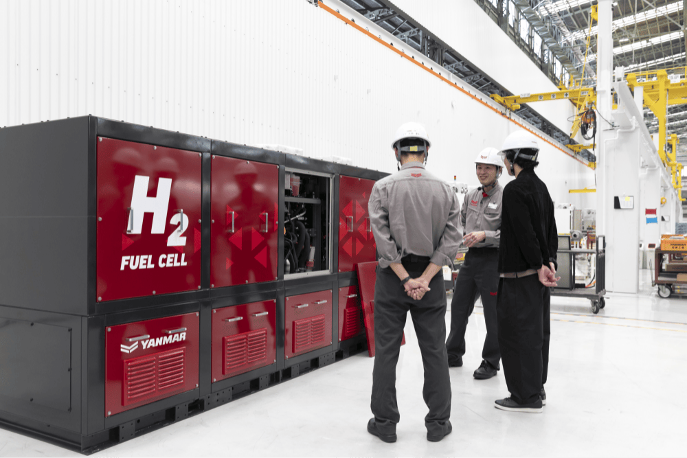 “This is our hydrogen fuel cell system, ‘FC Yanmar.’ Today, we’re giving you special access to see the inside as well.”