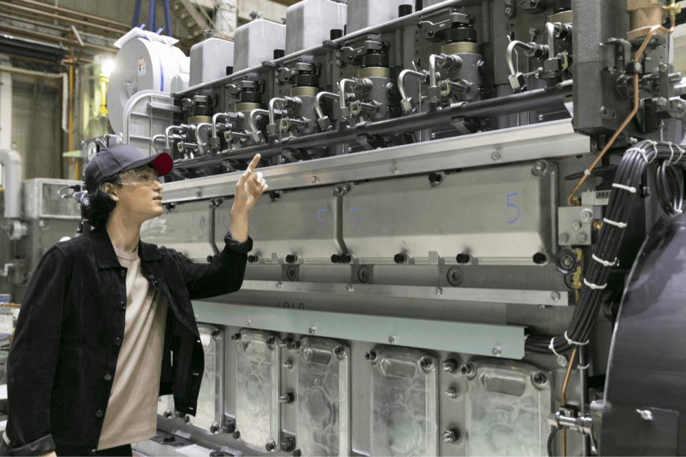 “Using the power generated by fuel combustion, the engine runs to generate electricity. In some vessels, three to four of these power-generation engines are installed,” explained Mr. Onishi.