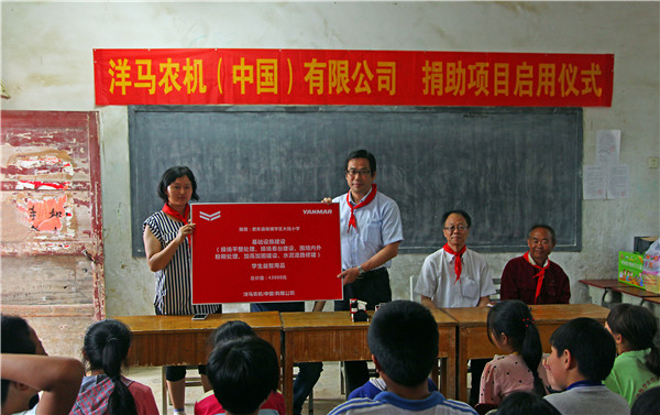 2017年5月23日,安徽省肥东县大陆小学的小朋友和老师们格外开心,这一天,洋马农机(中国)有限公司(以下简称“洋马公司”)为大陆小学援助项目启用。洋马公司为大陆小学修缮操场、围墙和新道路以及包括学习用品、益智用品50份。