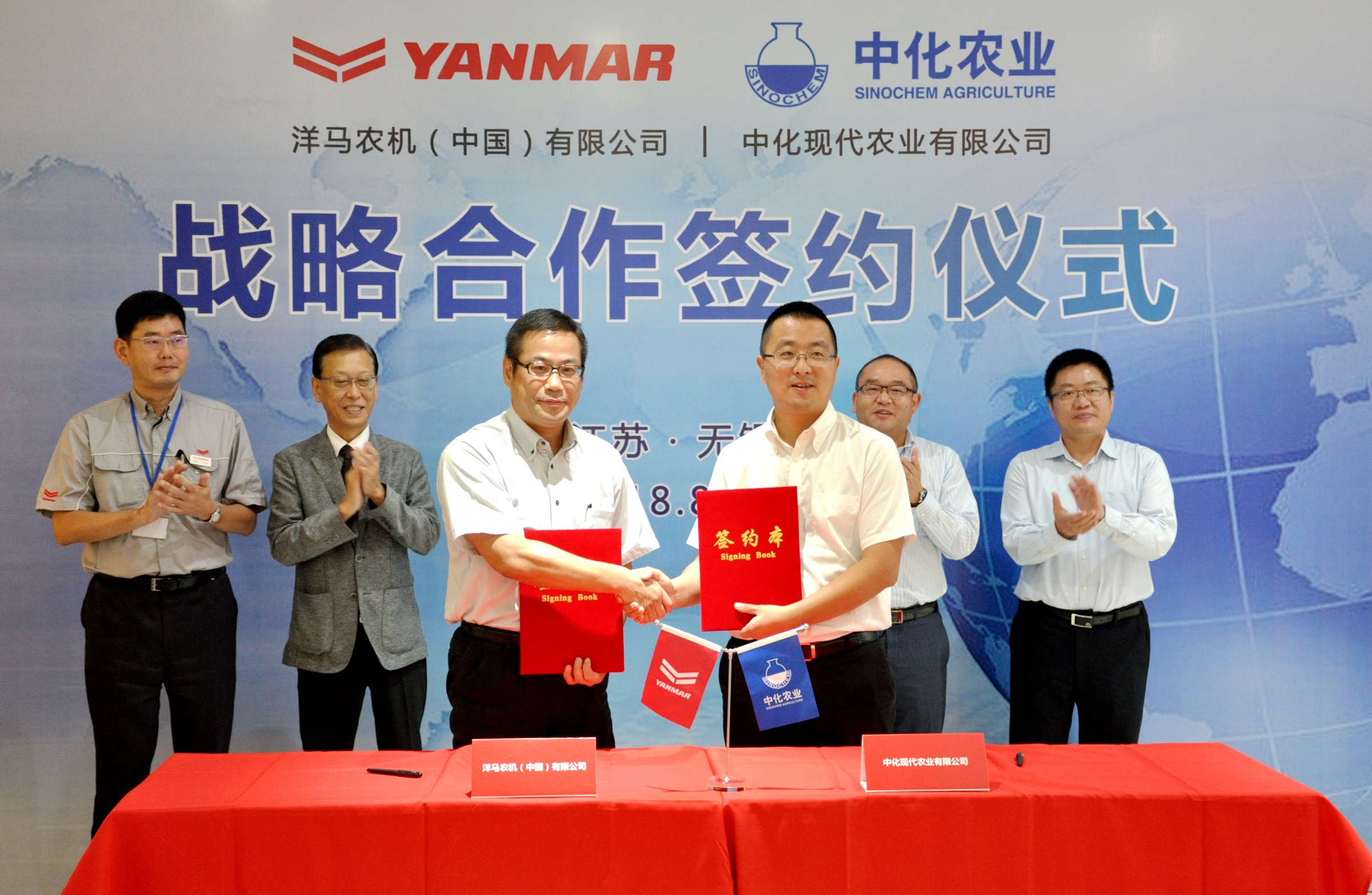 8月23日,洋马农机与中化农业在位于无锡的洋马农机(中国)有限公司签署战略合作协议。洋马农业株式会社社长北岡裕章、中化农业总裁覃衡德等双方相关领导共同见证签约仪式。洋马农机(中国)有限公司总经理上田啓介与中化农业MAP事业部总经理应敏杰,代表双方在战略合作协议上签字。