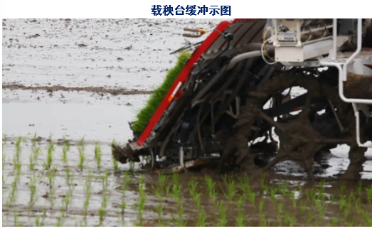 载秧台油压减震装置可以减少载秧台落地时对作业面的冲击,保持作业面平整;同时减缓高速作业中浮船在不平整泥面上的颠簸。