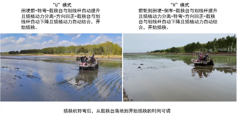 插秧深度自动补偿系统:深水区高速插秧中,补偿系统自动动作,实现泥面浅插不漂秧。