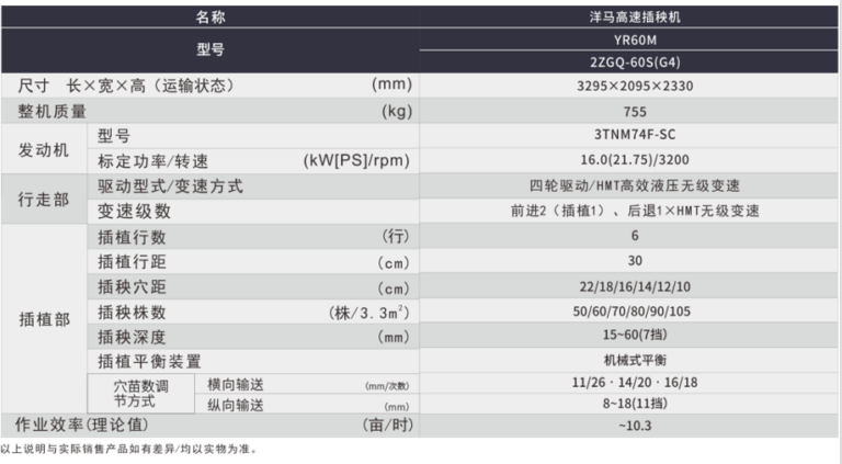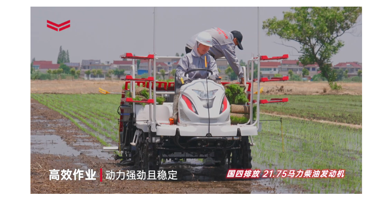 YR60M高速插秧机配备的洋马21.75马力3TNM74F-SC型柴油发动机,体积小、重量轻,动力强劲且节油。