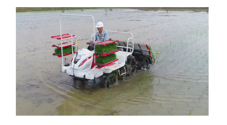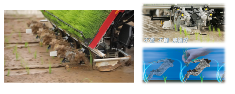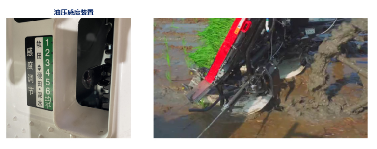 通过可调式状态,田基与泥面不平整状态下作业,插秧机不因颠簸造成秧台机械弹簧装置控制秧台水平晃动而影响插秧深度,保证插秧深度一致。