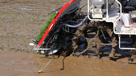 机具在田基与泥面不平整状态下作业,灵敏感应载秧台是否处于水平状态并迅速调整,减少载秧台因颠簸造成的晃动,使载秧台始终保持水平状态,保证插秧深度一致。