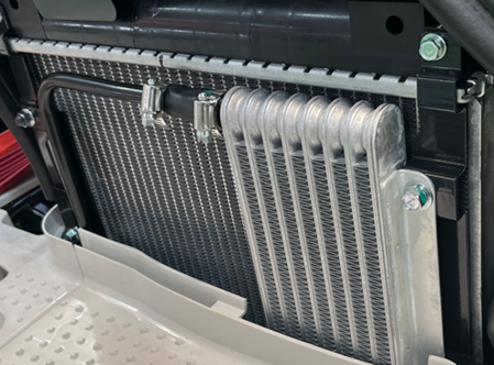 前置侧位冷却水箱与油冷器:在机具前进时常温风冷,冷却效果佳,能保证动力稳定输出。
