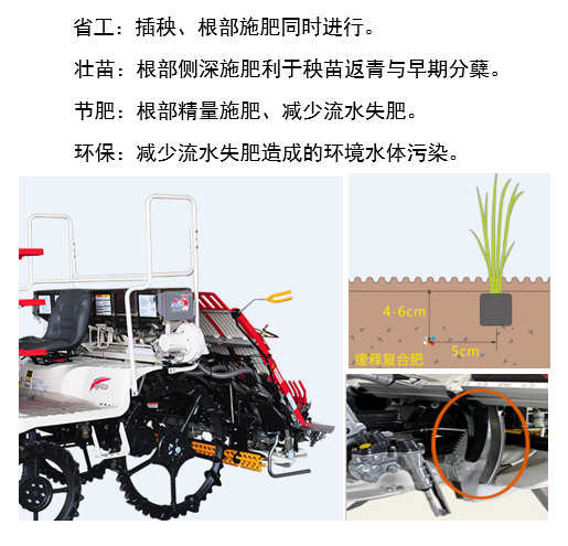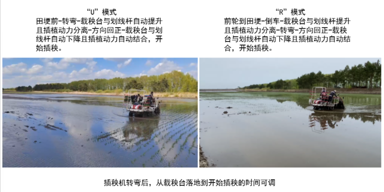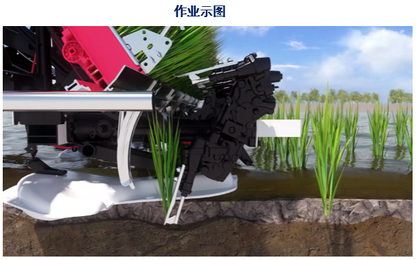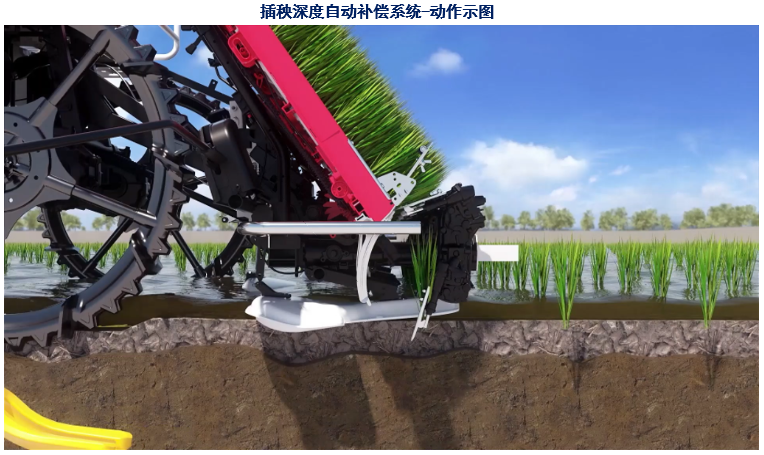 插秧深度自动补偿系统:深水区高速插秧中,补偿系统自动动作,实现泥面浅插不漂秧。