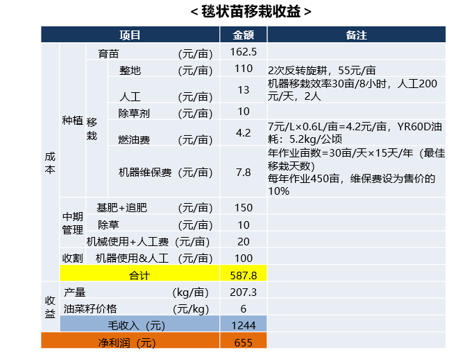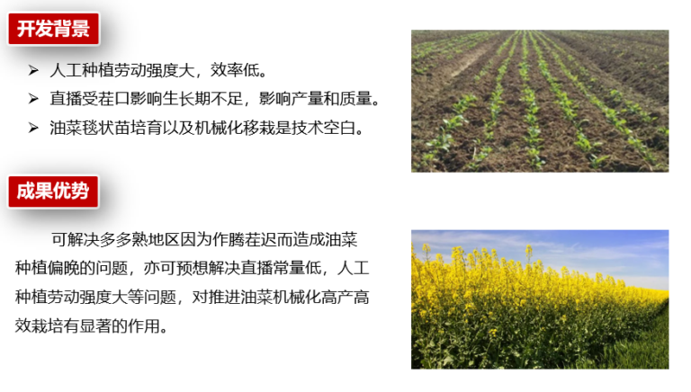 油菜毯装移栽与传统种植对比