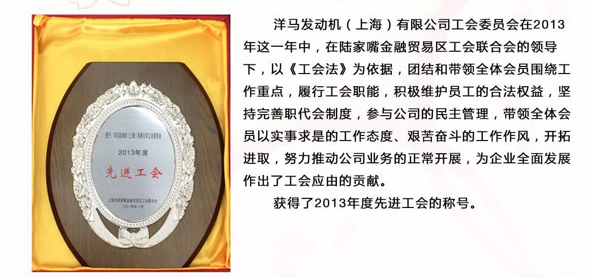洋马发动机(上海)有限公司工会获得2013年度先进工会称号