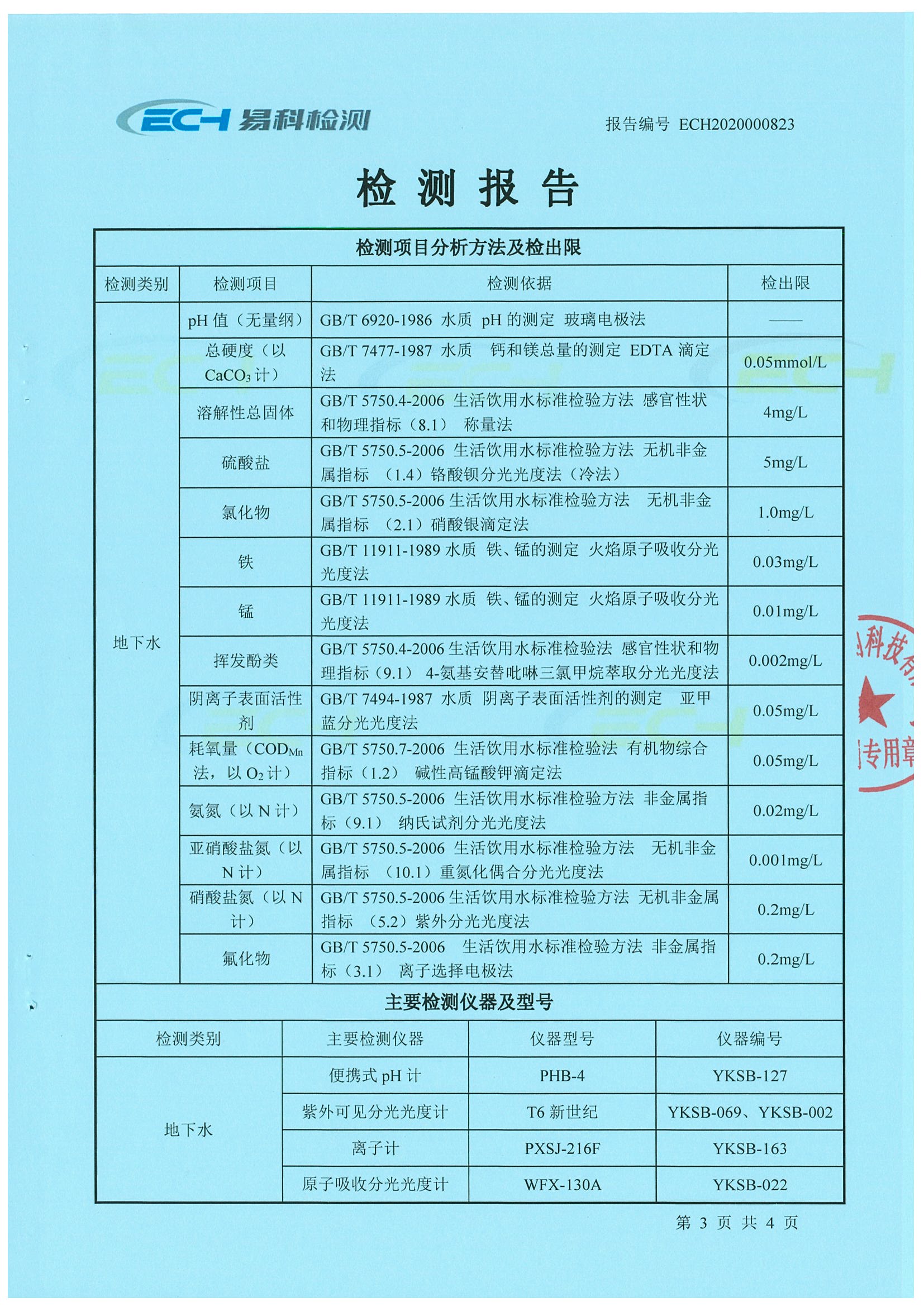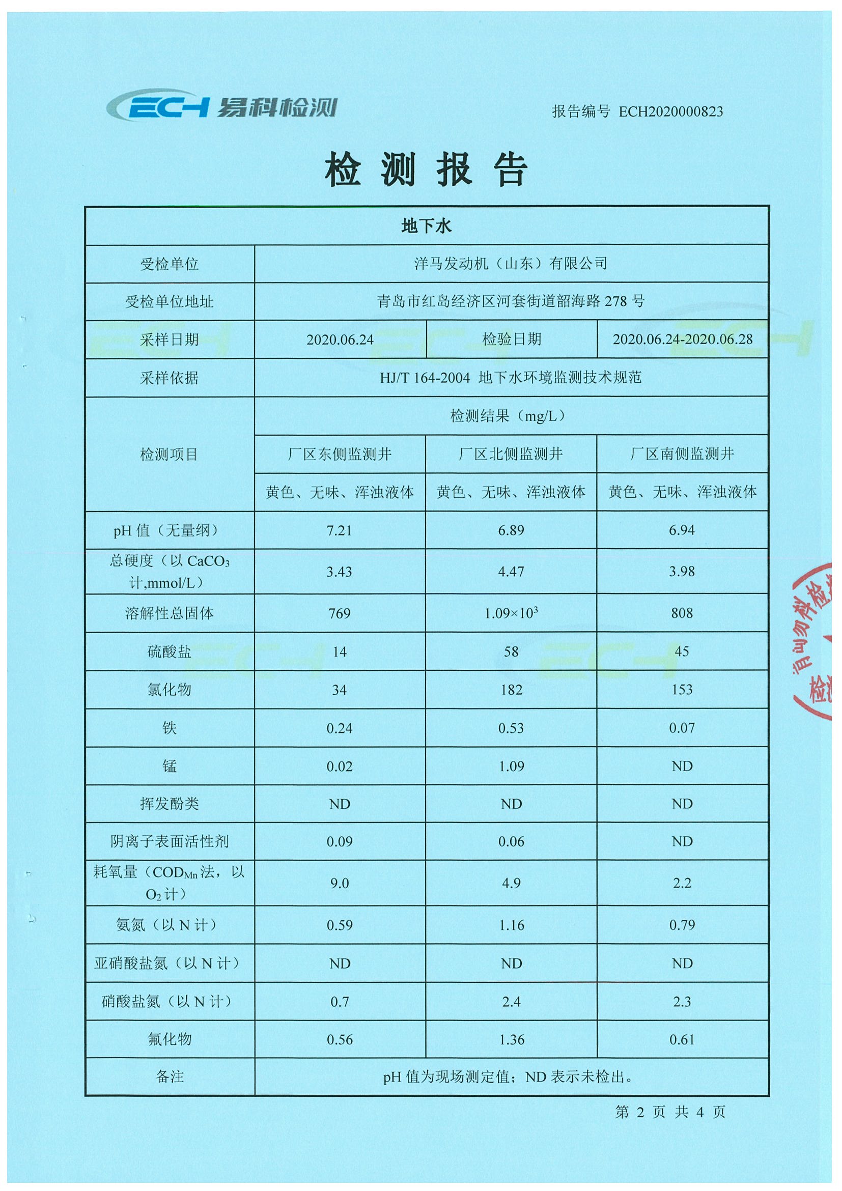 YSD地下水环境检测报告