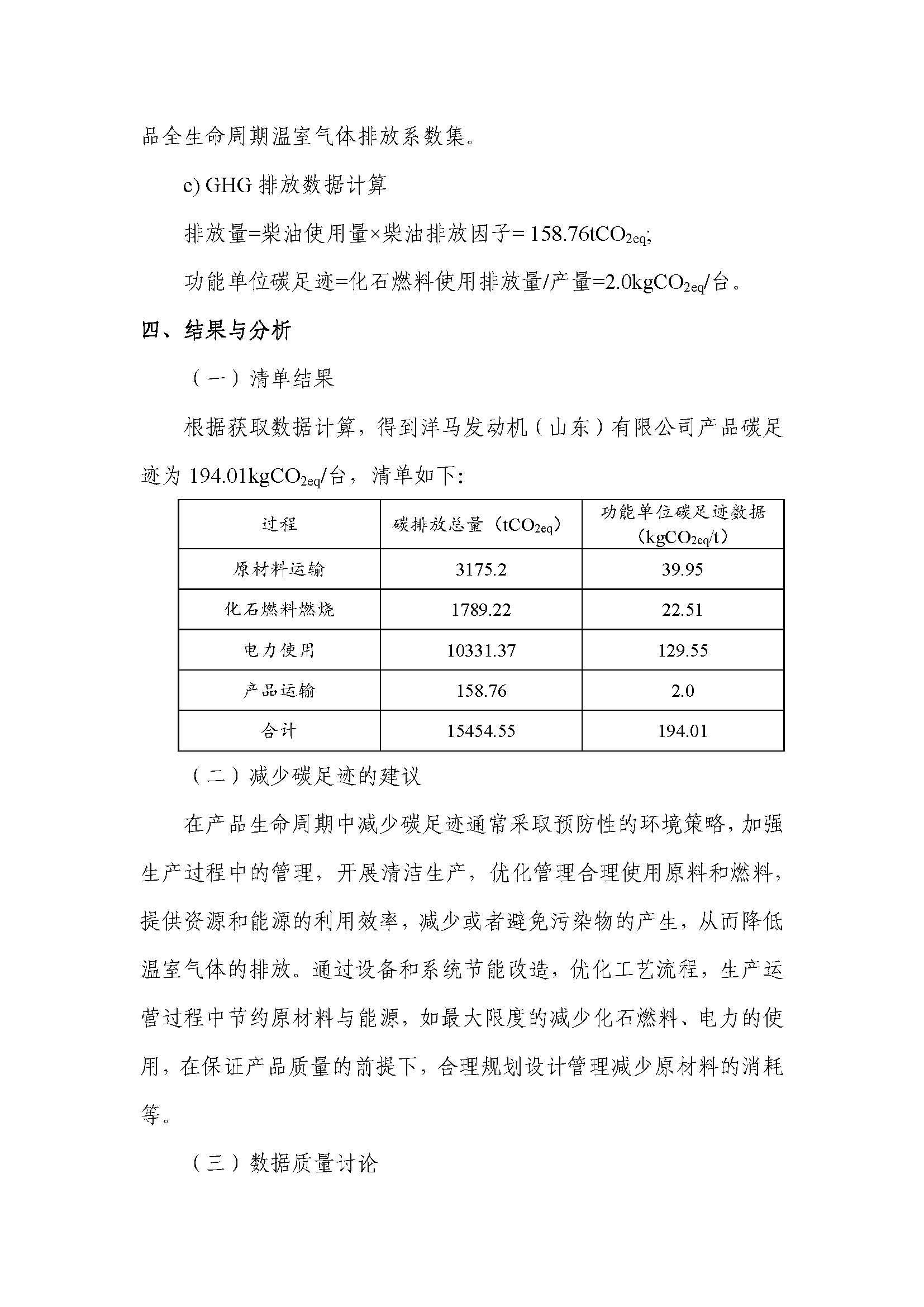 洋马发动机(山东)有限公司碳足迹报告