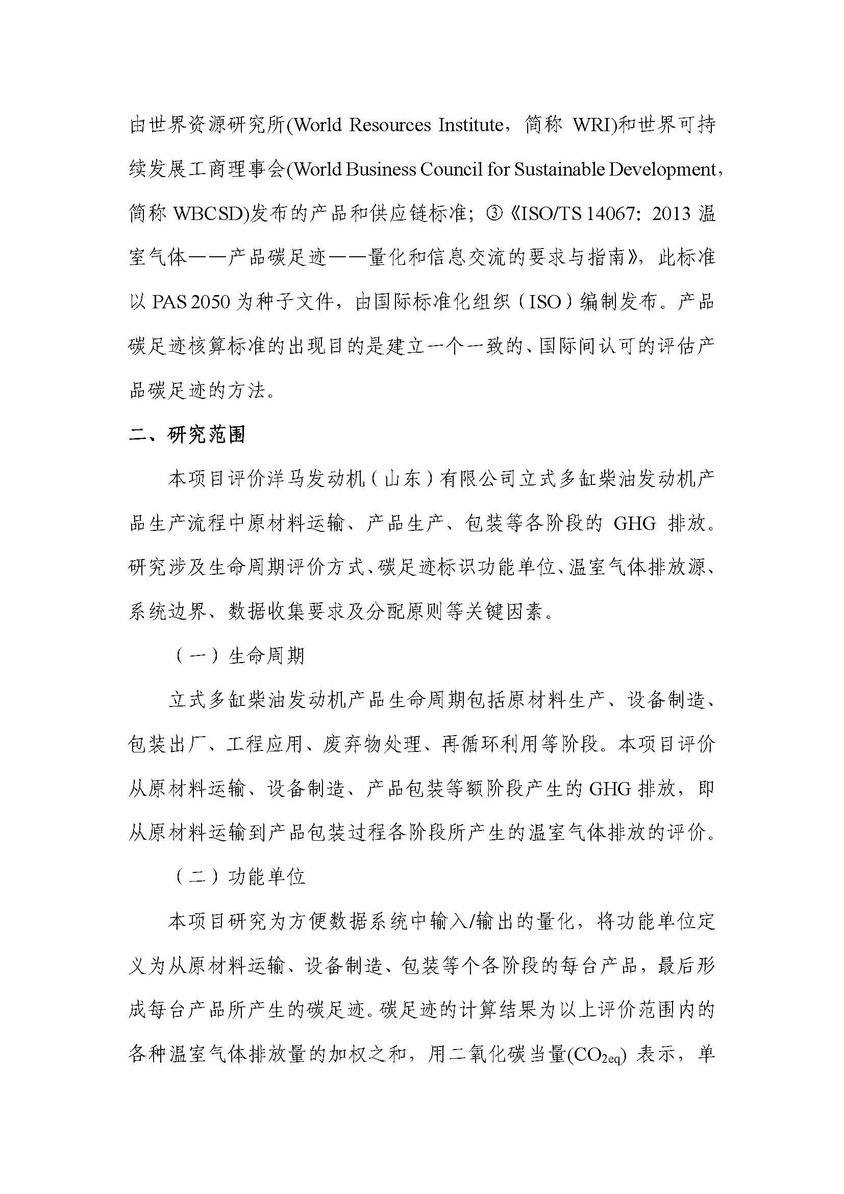 洋马发动机(山东)有限公司碳足迹报告