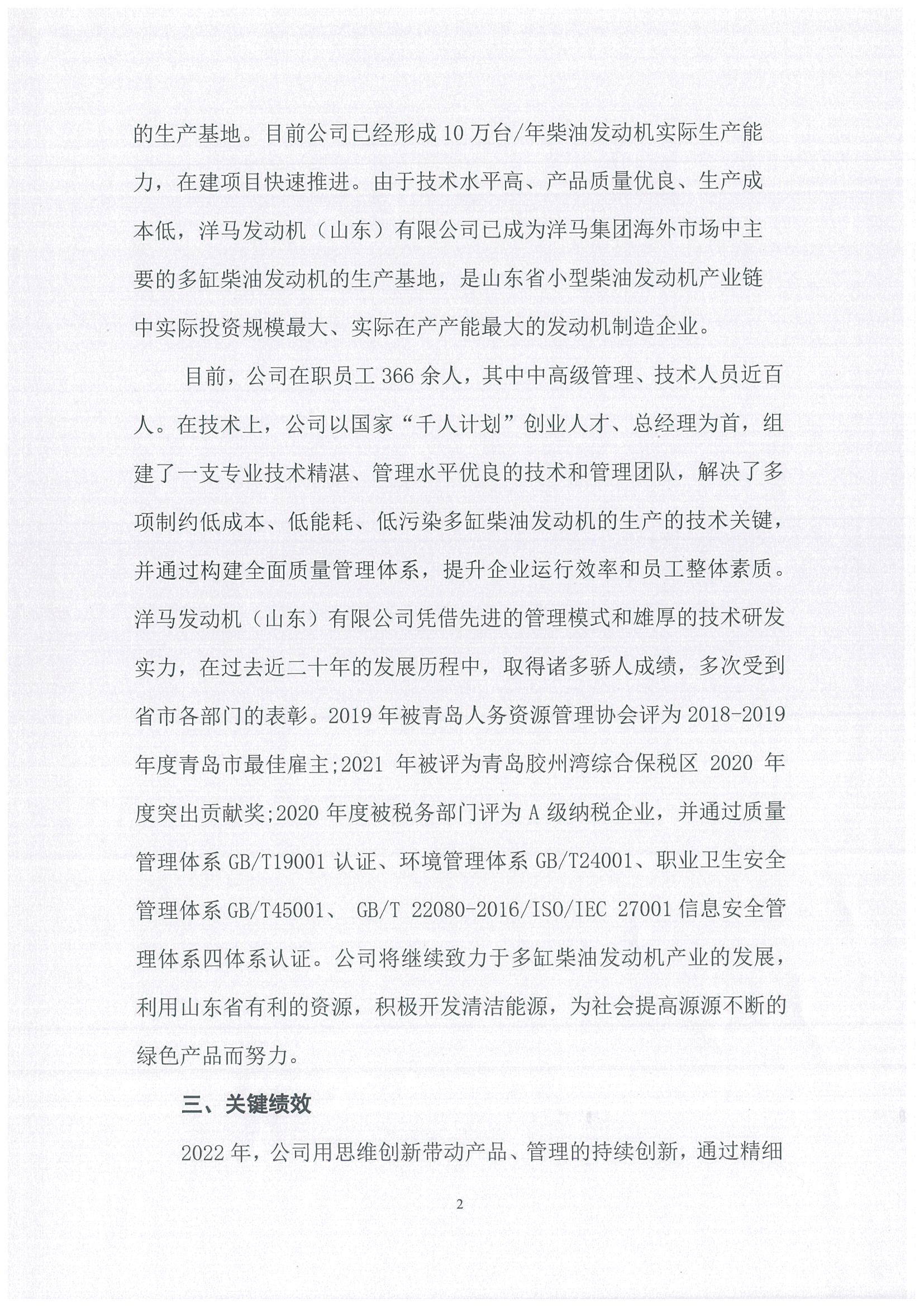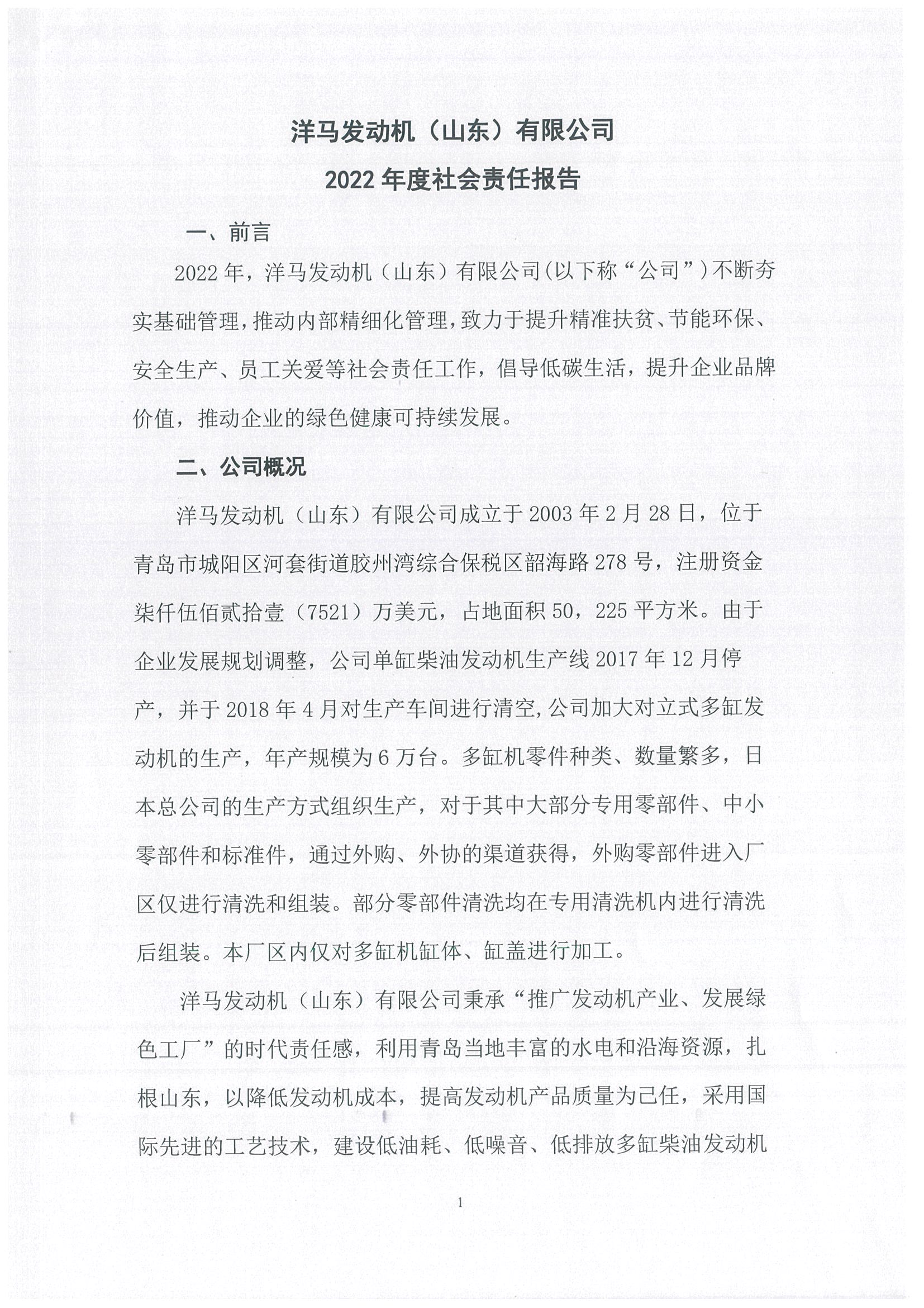 洋马发动机(山东)有限公司社会责任报告