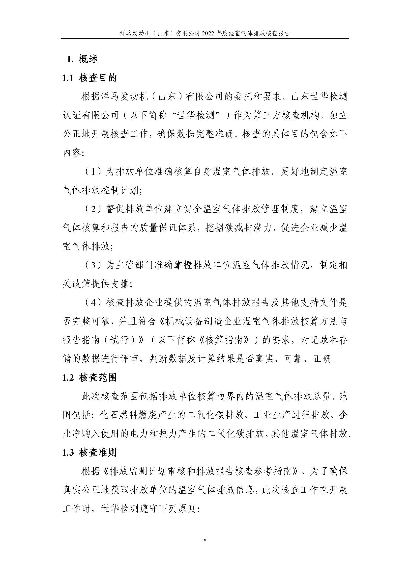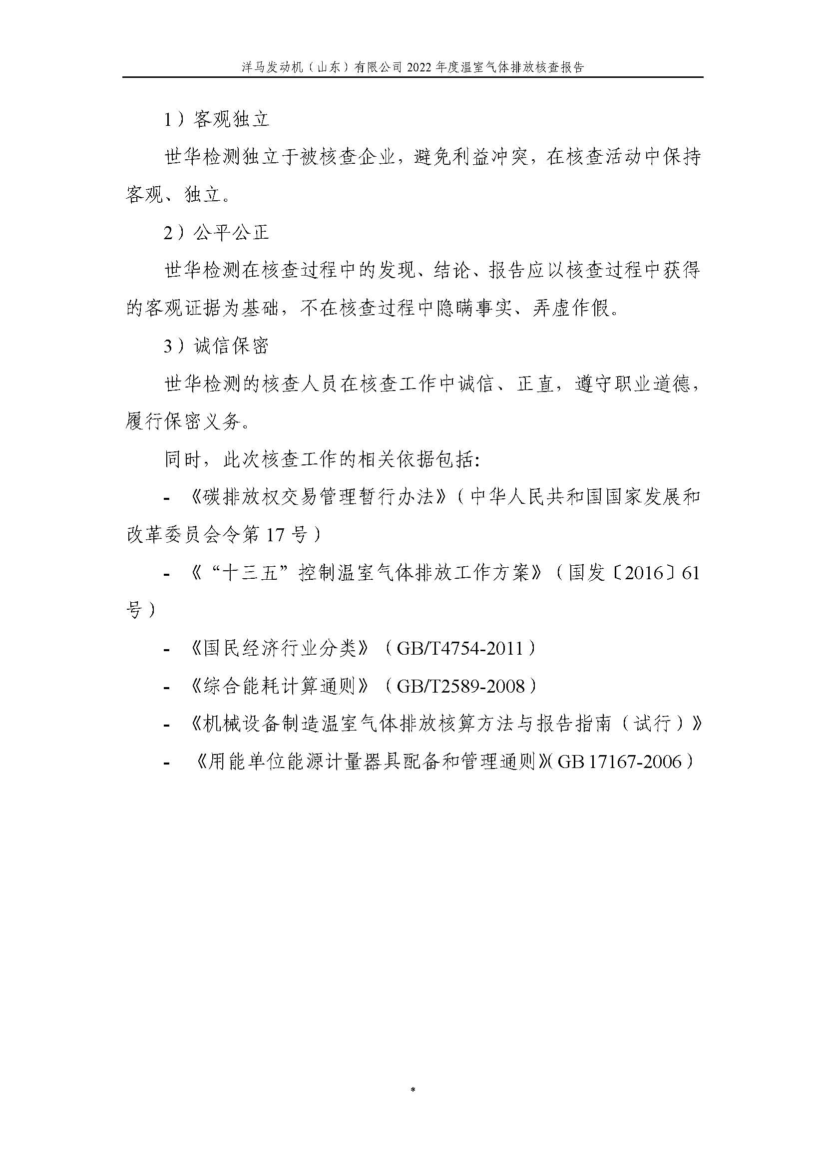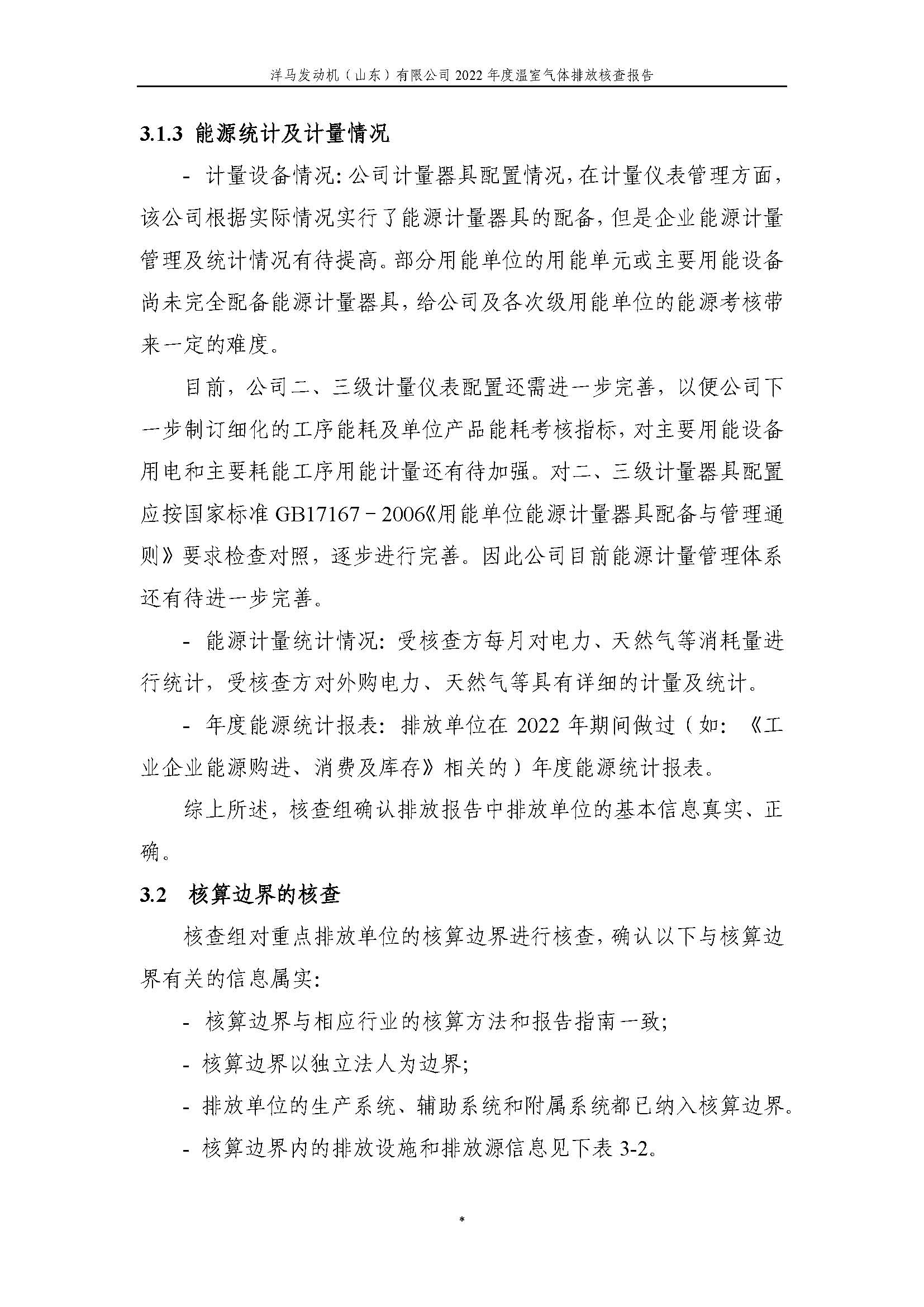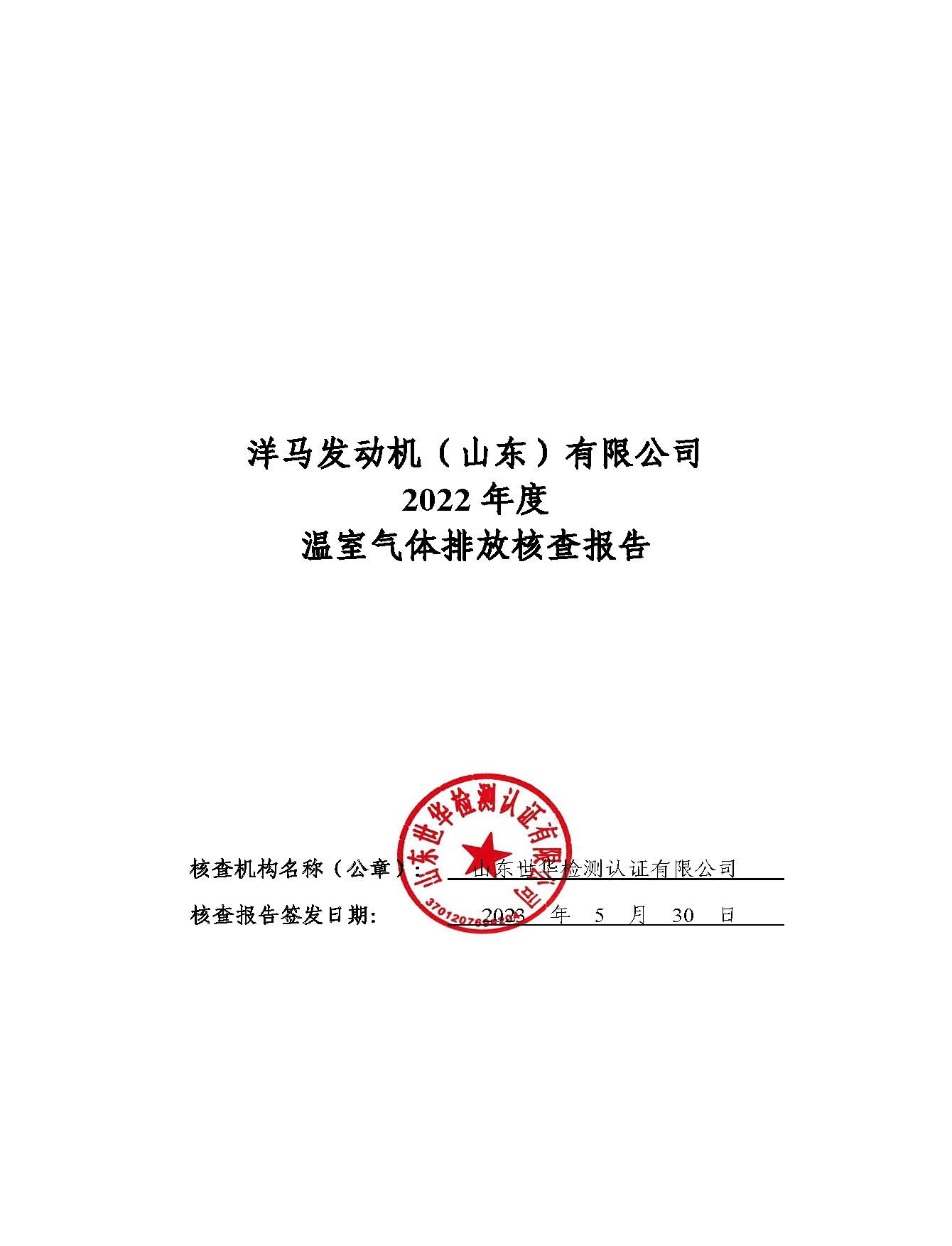 洋马发动机(山东)有限公司温室气体排放核查报告