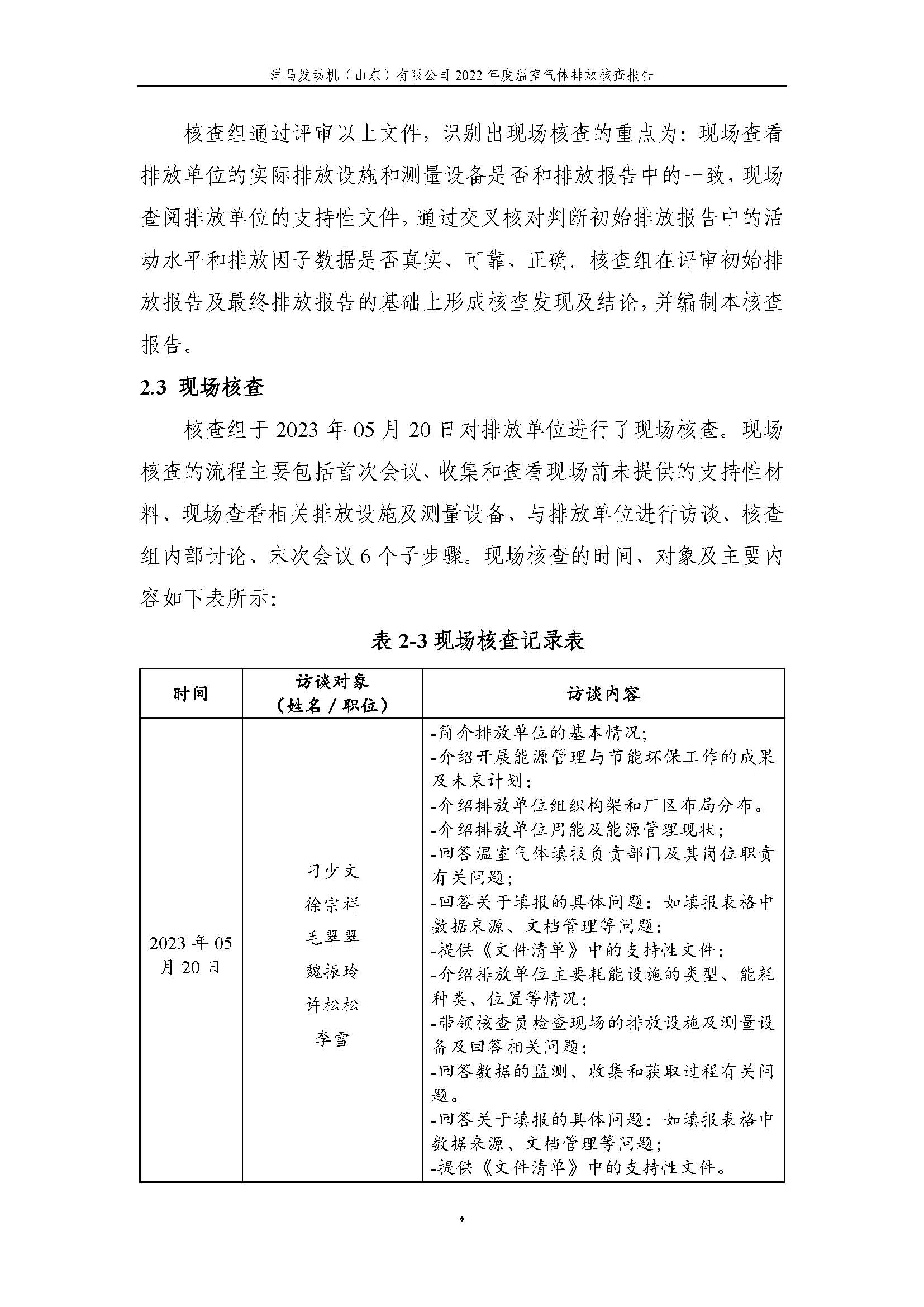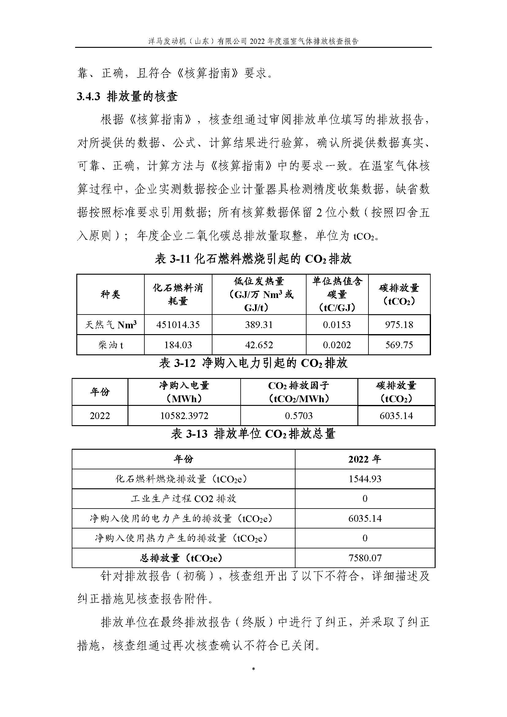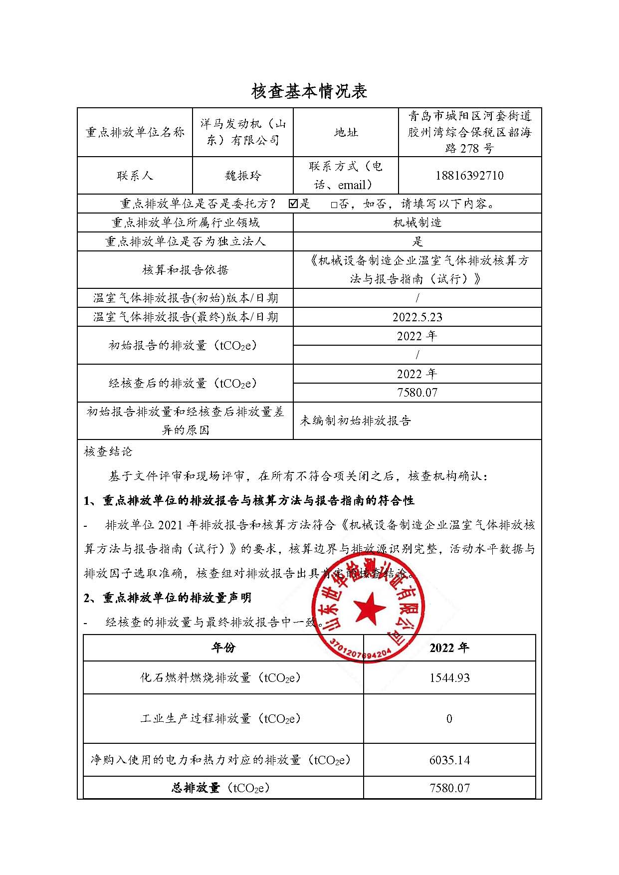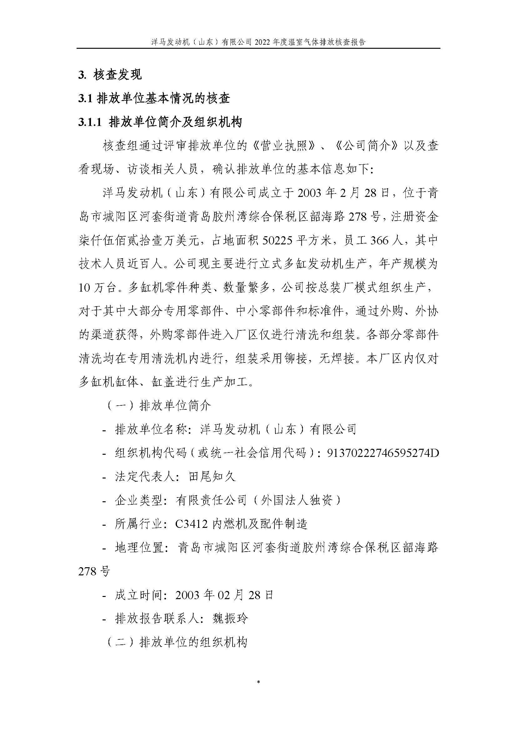 洋马发动机(山东)有限公司温室气体排放核查报告